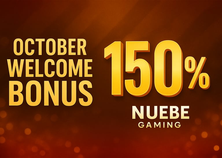 The October Welcome Bonus at NUEBE GAMING is exclusively tailored for new players who join the platform this month. Here’s what makes it special: